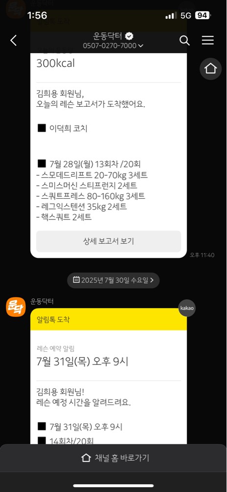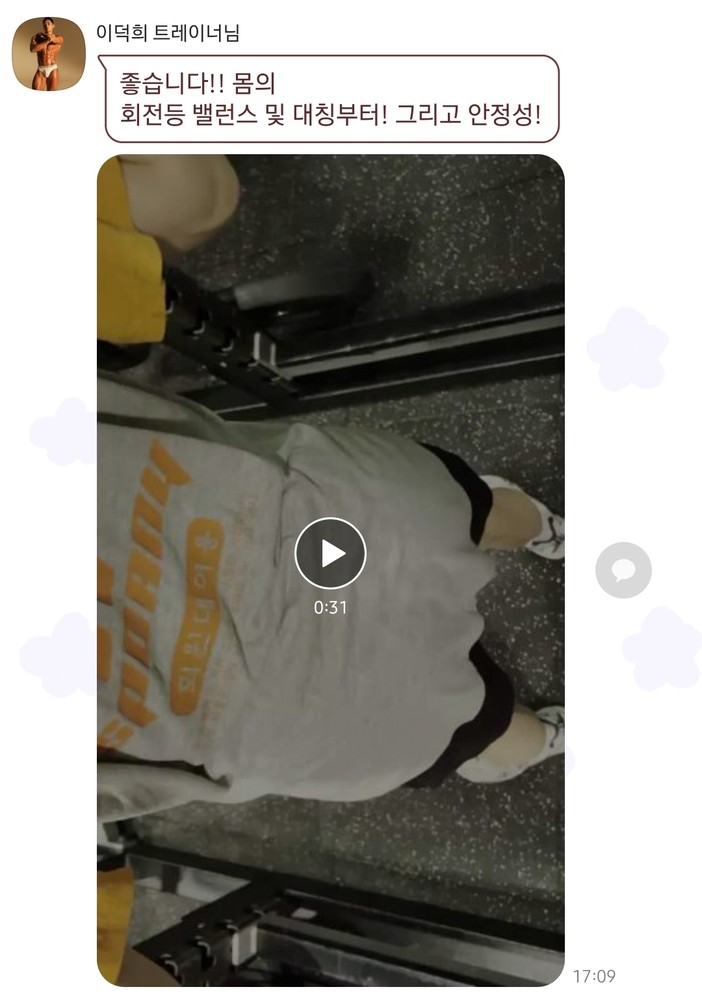덕희쌤은 그날 수업했던 루틴과 영상을 카톡으로 보내주세요 그럼 혼자 운동할때 어떤 운동을 어느정도 해야할 지 계획할 수 있어요 영상으로 올바른 자세가 어땠는지 볼 수 있구요 결과적으로 이제는 혼자 운동할 수 있겠다는 자신감이 생겼어요!!!! 헬스장에서 하고 싶었던 운동의 이름이나 방법들을 알게 돼서 너무 좋아요 ㅎㅎ 그리고 덕희쌤 완전 친절하세요!! 성실하시구요 수업 내내 재밌었어요 피티 고민하시는 분들 덕희쌤 진심으로 추천해드려요 :)Pt 20회차!