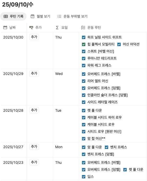 특히 노션 앱을 활용해서 매주 운동 영상과 기록을 정리해주신 게 정말 좋았습니다.지난 주차 기록을 보면서 변화를 눈으로 확인할 수 있어서 동기부여가 많이 됐습니다.