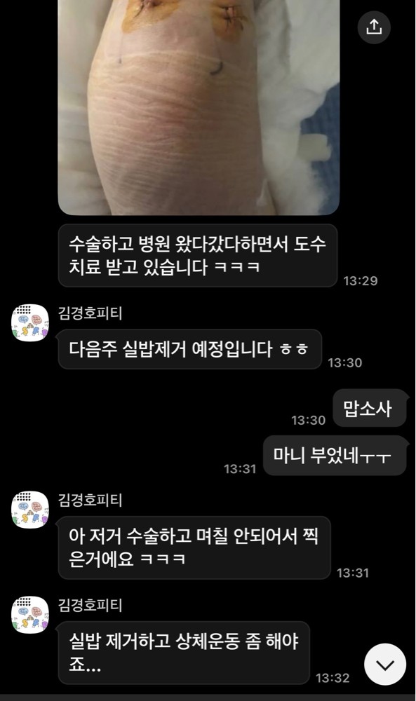 실제로 수술 후 근력이 다 빠져서 잘 걷지도 못했는데, 선생님과 가벼운 스트레칭과 마사지부터 근력운동까지 힘들지만 단기간 빠르게 재활하여 일상 생활에 지장이 없을 만큼 회복하였습니다.