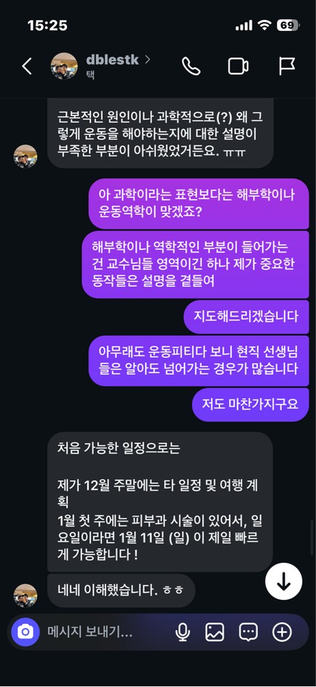 처음에는 20회 정도 운동 기초를 배우려고 시작한게, 몸이 전과 달리 많이 성장하는 걸 느끼면서 계속 꾸준히 레슨을 받게 되었네요~!