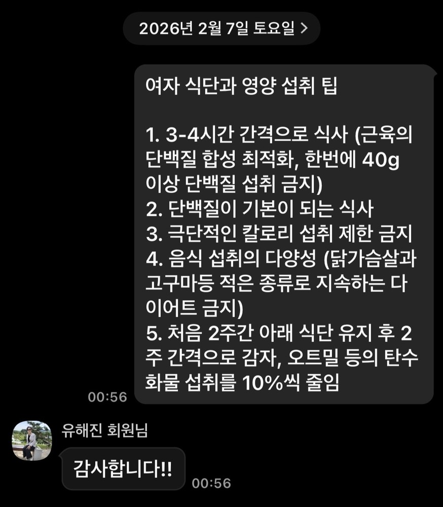 또한, 체형 분석을 통해 어떤 부분이 약점인지, 이를 해결하기 위한 루틴과 운동 방법을 제시해주시고, 이를 적용해 본 결과 변화가 조금씩 느껴졌습니다.