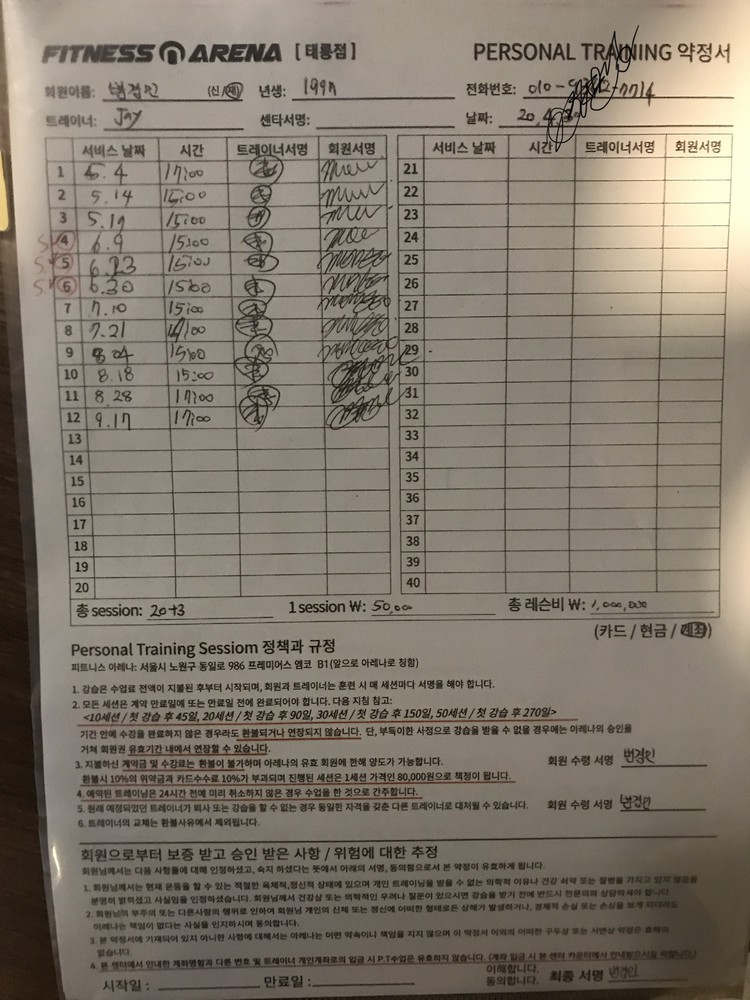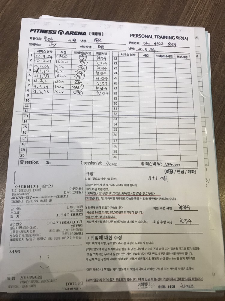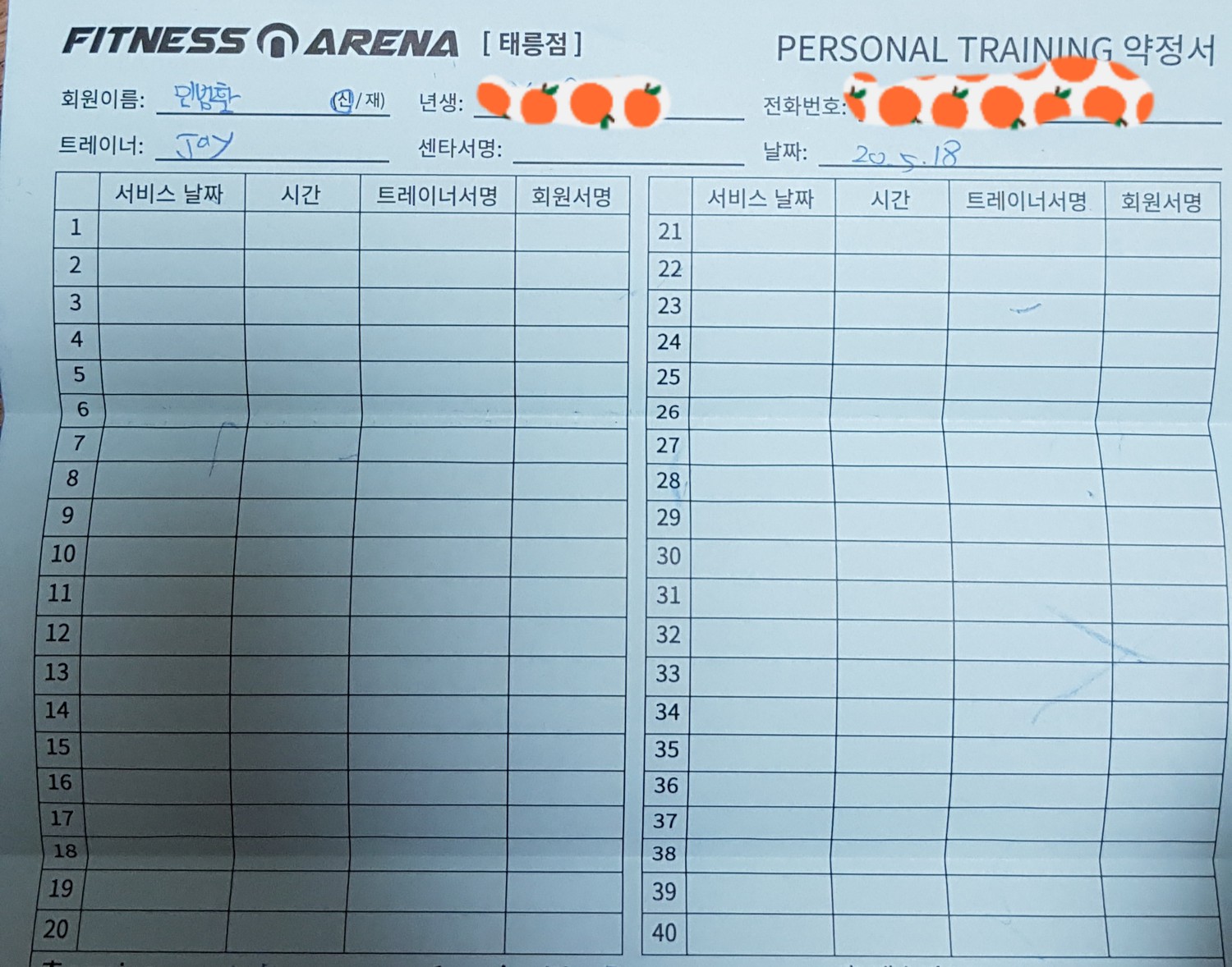 상담 후 바로 피티30회 센터 12개월 등록했고