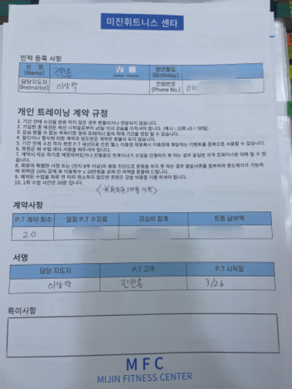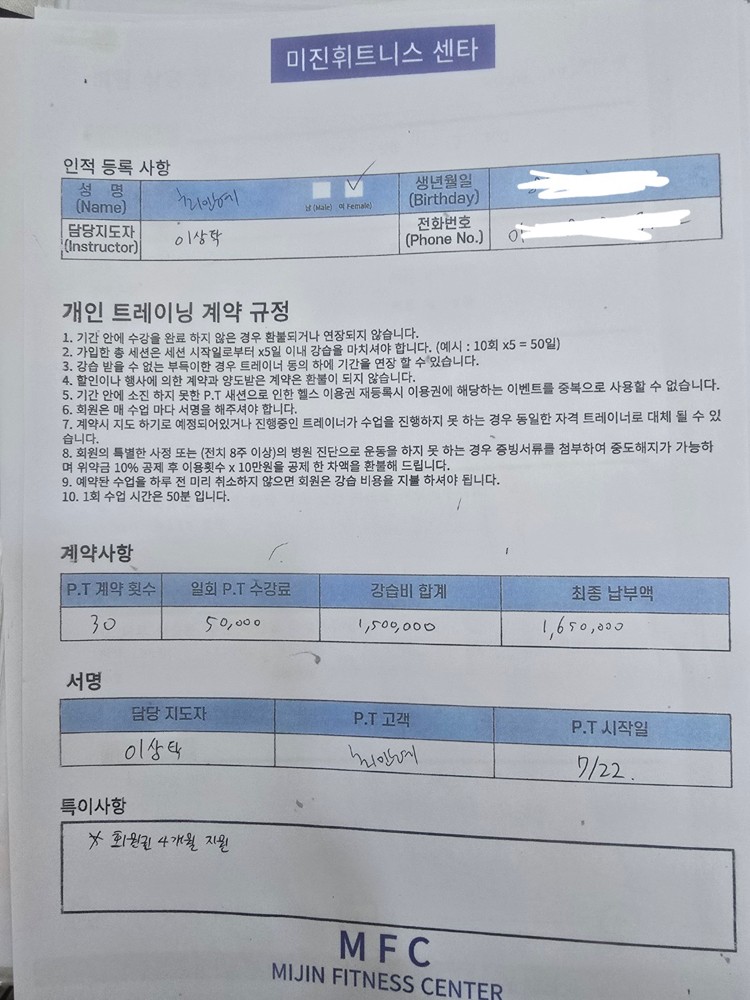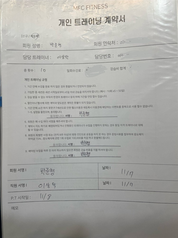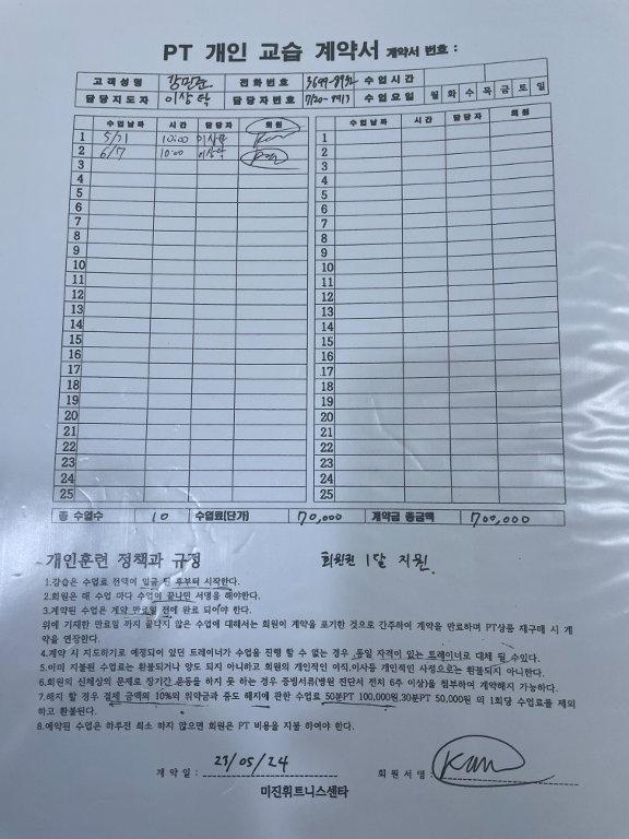 웨이트는 처음이라 다른 곳에서 PT를 받아봤는데 문제도 많고 태도도 마음에 안들어 횟수가 70%이상 남았는데 환불까지 포기하고 접었습니다.