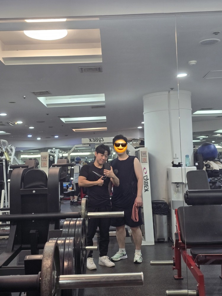 그렇게 체계적으로 한 덕분에 84~5에서 74(체지방24%>>18~19%)까지 뺐습니다! 한번만이라도 받아보시면 이분은 다르다는걸 알수있을겁니다.! 체계적이고 몸을 만들고싶다는 분은 그냥 상탁트레이너님한테 맡겨보세요! 사진을 많이 찍진않았어서 일단 함께한 사진만 남겨봣어요!