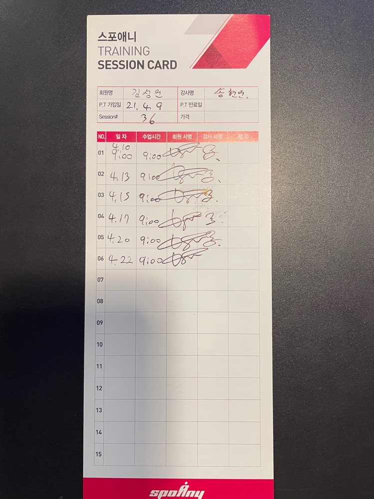 운동 능력이 좋은 회원님 오전 9시 운동을 1년 넘게 함께해 주셔서 항상 감사합니다. 항상 응원합니다. 다음주 뵙겠습니다.