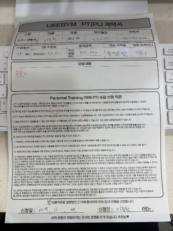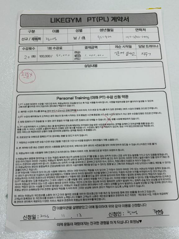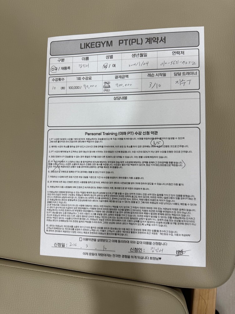 처음에는 막연히 어떤 PT를 하더라도 20회 정도를 해야겠다. 이런생각이었는데 10회만 권하시더라구요.