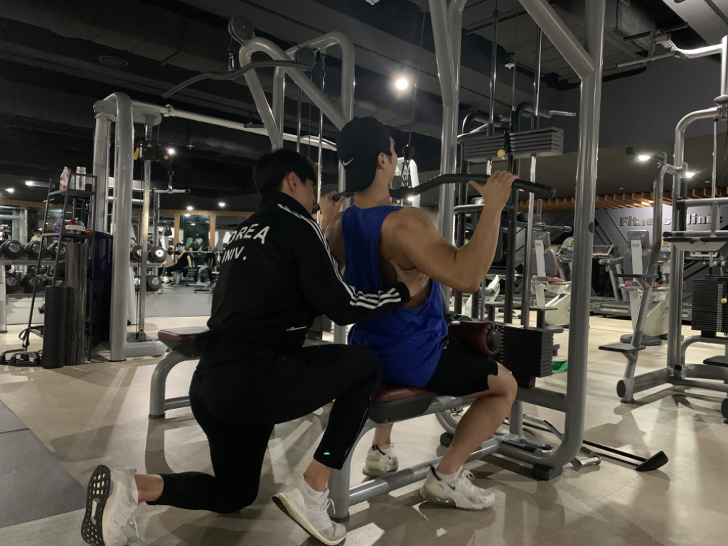 군대에서 운동을 조금하고 혼자서 헬스다니고 홈트만 했었습니다.