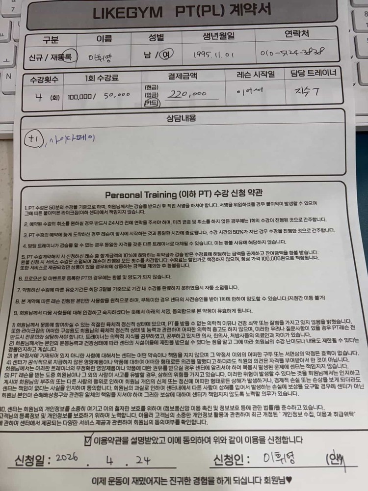 화이팅! 바프도전!믿고 현수쌤하세요!최고👏피티를 약 10회 정도 했었지만 다시 제대로 배우고 싶은 마음에 여러 후기를 보고 몇명의 선생님과 체험해보고 선생님이 가장 저와 맞다고 판단이 들어 30회를 하게되었습니다