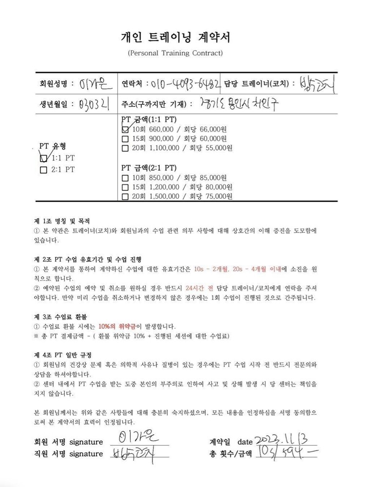 처음에는 그룹 pt를 했었는데 몸이 여기저기 안좋은 곳이 많아서 1:1 pt를 받기로 하고 계속 운동했습니다
