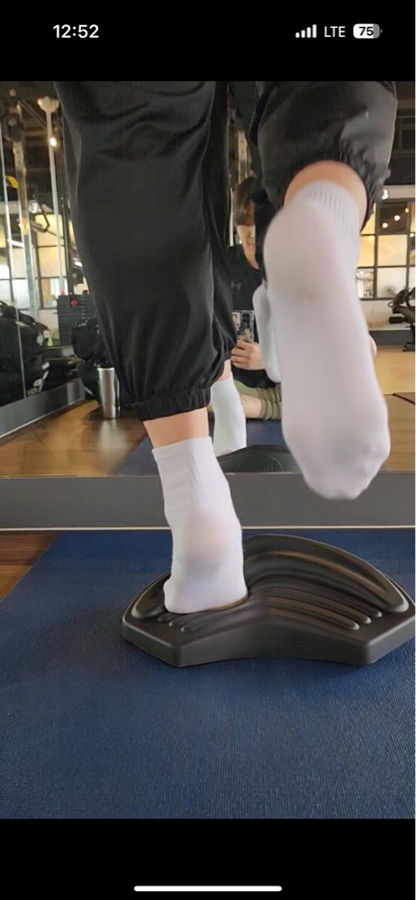 코치님께서 제 앞정강근 통증의 원인을 꼼꼼하게 살펴봐 주셨습니다. 종아리가 두꺼운 편이라 힘이 약할 거라곤 생각을 못했는데 오른쪽 종아리 힘이 약하더라고요. 그리고 엄지 발가락이 살짝 휜 것도 이날 PT 받고 처음 알았습니다. 발가락이 완전하게 지면을 눌러야 힘을 효율적으로 쓸 수 있는데 저는 엄지 발가락이 힘을 제대로 못 써 그 부담이 앞정강근과 종아리에 갔던 거였어요. 그래서 코치님께서 발 마사지, 한 발 카프레이즈, 엄지 발가락 일자로 지면 꾹 누르기 등 추천해 주셨습니다. 다음날 종아리 근육통이 세게 왔지만 운동할 때 앞정강근 찌릿한 게 느껴지지 않아서 좋았어요. PT 받고 며칠 지나지 않았지만 알려 주신 보조 운동 꾸준히 하면 더 나아질 것 같아서 앞으로의 운동 생활이 기대가 돼요.