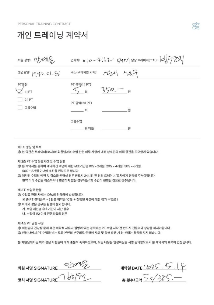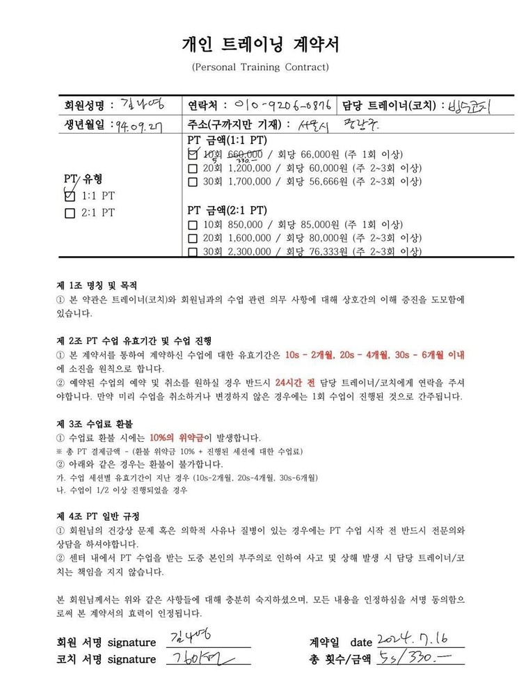 이전에도 1:1 pt를 해봤는데 그때랑 다르게 제 자세랑 아픈 부위 등 잘 챙겨주셔서 너무 좋았습니다
