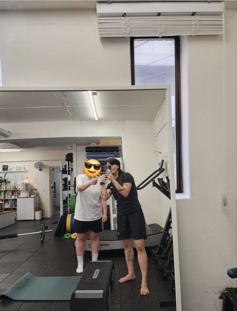 체험 수업 신청하신지가 4월인데 그동안 꾸준히 계속 수업 진행해 주셔서 정말 감사한 마음입니다. 🙂 처음에 있었던 통증은 사라지고 이제 근력도, 체력도 너무 강해지셔서 제가 다 뿌듯합니다ㅠㅠㅠ 맨몸으로 운동해도 아프던 시절이 엊그제같은데.. 벌써 스쿼트 3~40kg는 기본으로 하시고, 8kg 덤벨 한 쌍씩 들고 스플릿 스쿼트 하시는 모습은 얼마나 감동이던지요🙊🙊🙊 꼭 수업이 아니더라도, 앞으로도 저랑 같이 빙동 오래 해요!! 😁🫶