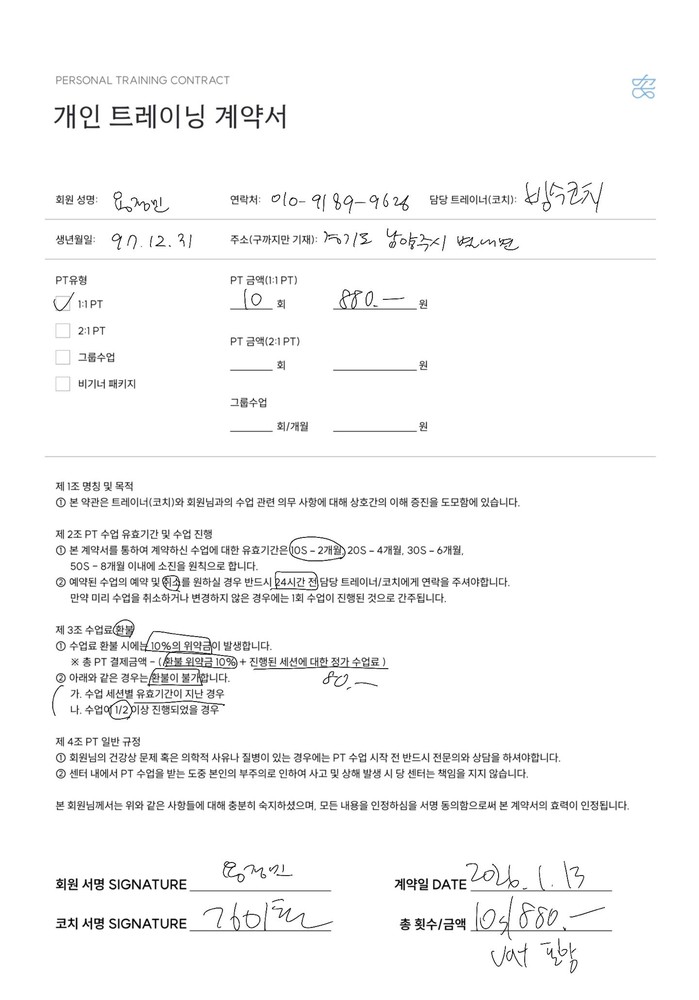 작년 11월에 시작해서 PT 20회차 모두 마쳤습니다.