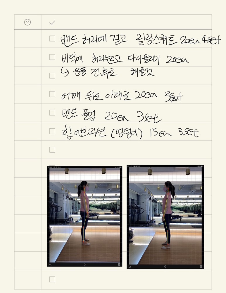 그리고 골반 경사에 맞는 운동법과 제가 스쿼트자세를 어려워했는데 발을 밖으로 빼서 하면 잘되더라구요 ! 쌤이 몸에 맞는 알맞은 운동법을 알려줘요~