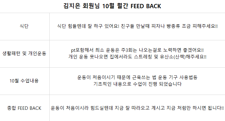그리고 다이어트가 아닌 체력증진이 목표였기 때문에 식단은 터치하지 말아달라고 부탁드렸는데 운동만 집중적으로 가르쳐주셔서 스트레스 안받고 즐겁게 운동하고 있습니다🏋♀️🏋♀️