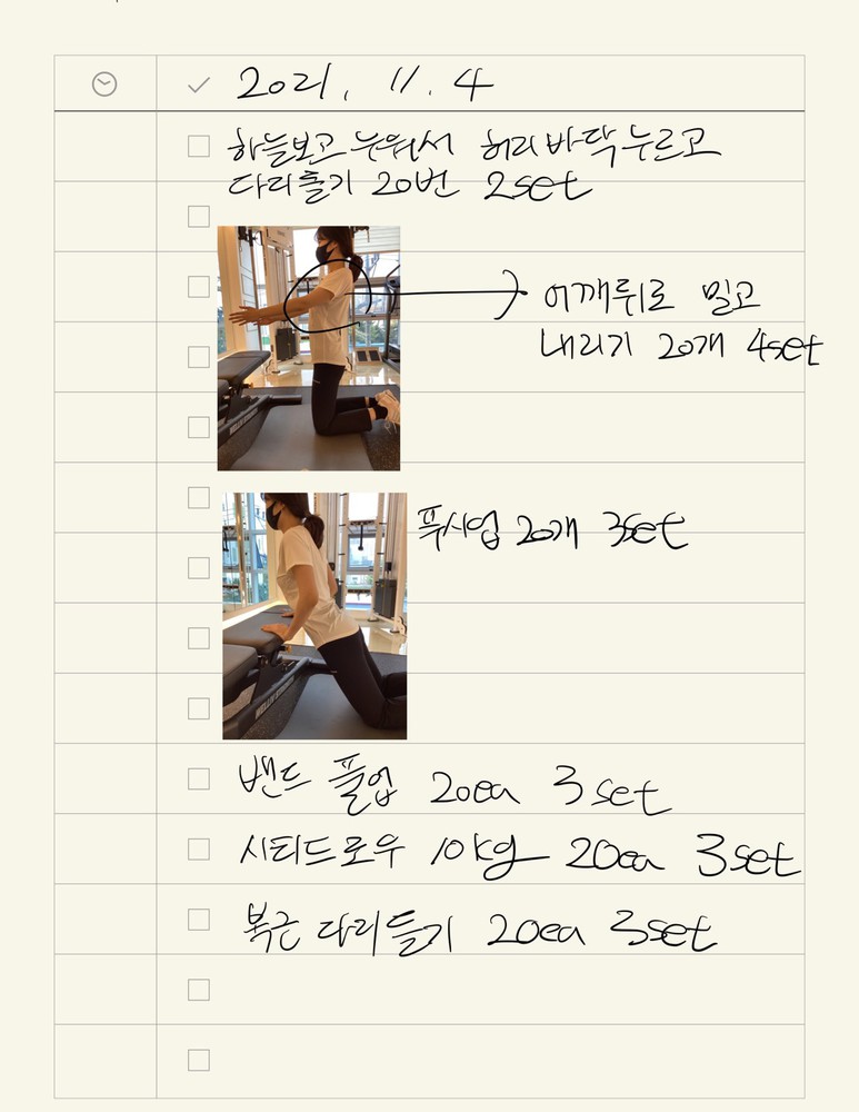 평소 상체가 약해 라운드 숄더도 심했는데 운동하면서 교정해가고 있고 엉덩이도 운동하면서 점점 애플로 만들어져가고 있어요!! 10회가 넘은 시점 제 몸이 변화하는걸 하루하루 느끼고 있어요 ㅎㅎㅎ