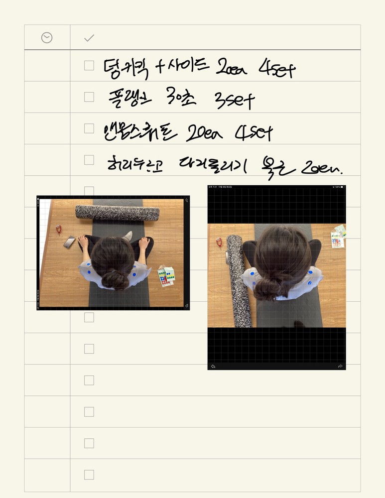 체력 늘리는게 가장 큰 목표였는데 10회차 쯤 됐을때 달라진게 확실히 느껴졌을 정도로 체력이 좋아졌어요😊🥹 그리고 공부하느라 오랜시간 앉아있어서 어깨가 많이 말려있었는데 운동하면서 어깨가 조금씩 펴지는게 넘 신기해요😆😆❤️