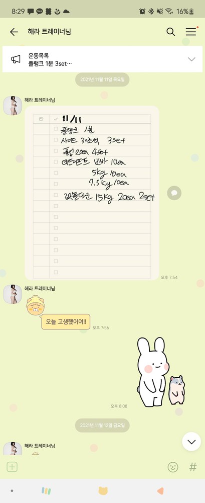 매번 운동끝나고 그날했던 운동목록과 다음날 몸상태까지 체크해주시고,