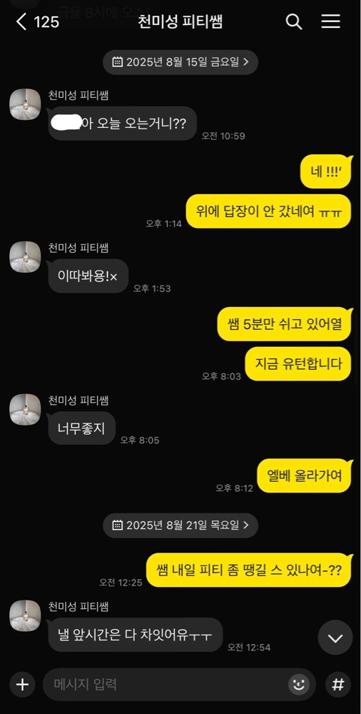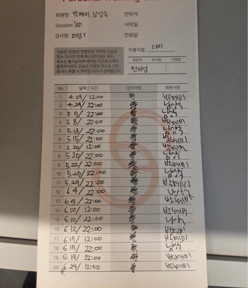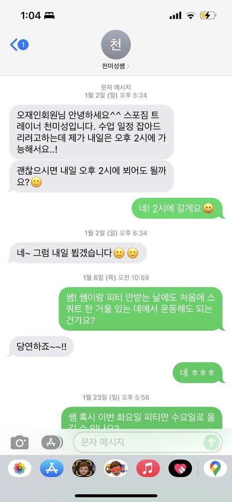 저 또한 통증으로 일 년 넘게 불편함을 경험한 만큼 몸과 움직임에 어려움이 있는 분들에게는 꼭 한 번 방문해보시기를 적극 추천 드립니다!!!천미성 선생님께 1년 5개월 정도 피티를 받았습니다! 이전에도 3-4년 정도 여러 피티 선생님께 배웠고 다들 좋은 선생님이셨는데요. 그중에서 가장 꼼꼼하게 제 몸 상태에 관심을 가져주시고 확실한 변화를 느끼게 해주신 선생님입니다:)