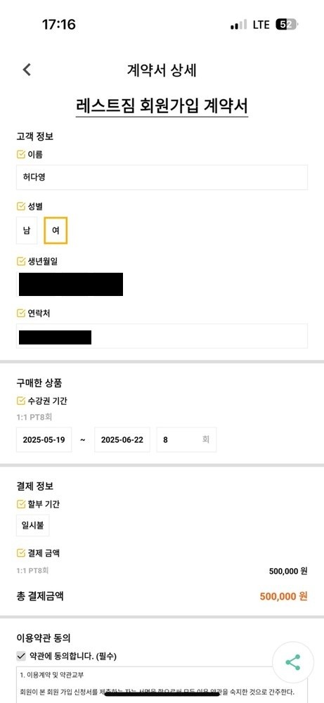 평소 허리통증이 있는 편이라, 다이어트 및 자세교정을 위해 레스트짐 팀장님께 PT를 받고 있습니다.
