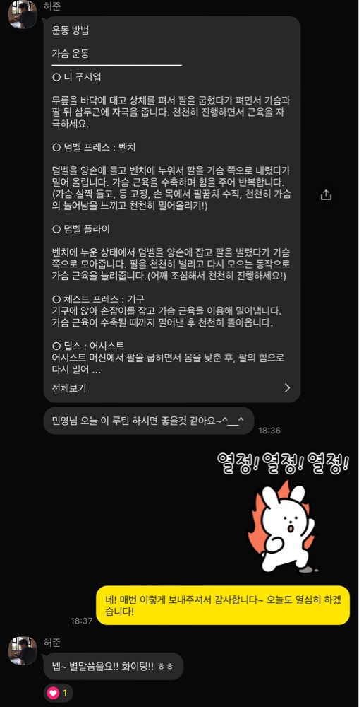운동에 대한 고민을 솔직하게 나눠주시고, 피드백을 빠르게 반영해주신 덕분에 변화도 눈에 띄게 나타났던 것 같습니다.