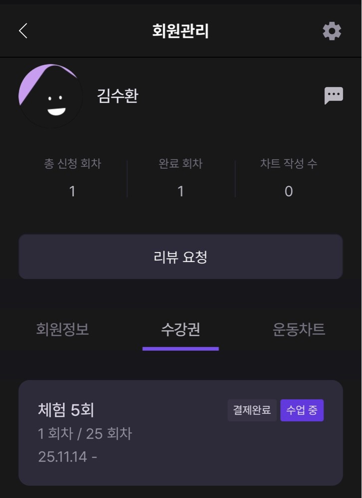 운동 시작하고 나서 체력 확실히 좋아졌어요. 하루 종일 앉아 있다 보면 허리도 아프고 쉽게 피곤했는데, 요즘은 확실히 좋아진게 느껴집니다. 윤식쌤이 루틴 관리도 잘 해줘서 좋았어요