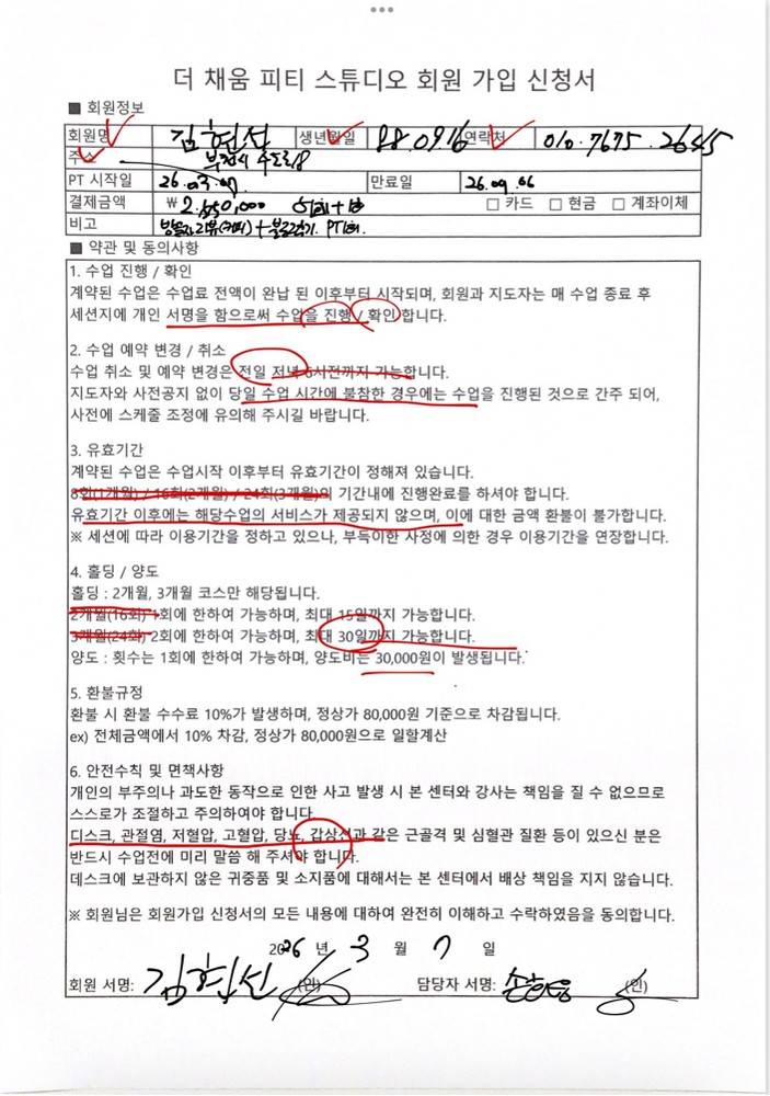 이번에 PT 24회 끝나서 50회 재등록 예정입니다! 운동하는 걸 귀찮아하고 힘들어하는 편인데, 항상 독려해주시고 신경써주셔서 감사해요, 선생님☺️💕