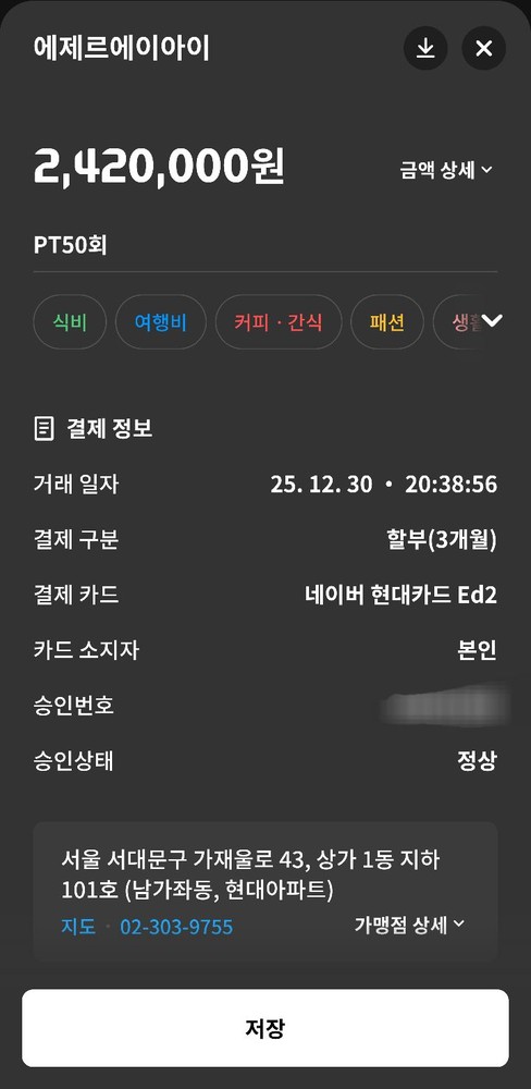상담 중 느껴지는 전문가 다운 포스와 열정에 제 몸뚱이를 맏겨도 되겠다 싶어 바로 PT 30회를 결제 하였습니다.