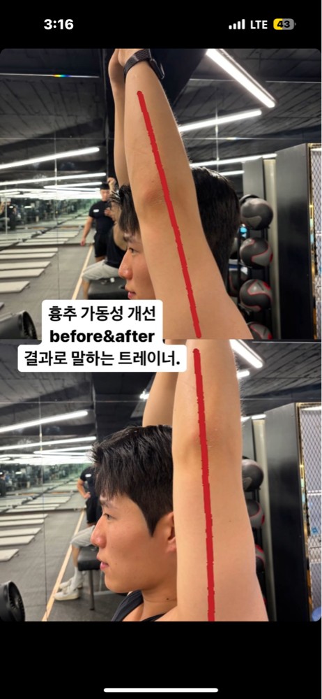 PT를 여러군데서 많이 받아봤지만 미르쌤이 최고라고 말 할 수 있을거 같습니다. 정말로 시간과 돈이 아깝지 않은 최고의 선생님 이신거 같아요! 1회체험으로 이렇게 좋은 선생님을 알게 되어 넘 좋구요.. 평소 목과 어깨에 통증을 호소 하던 저였는데 선생님이 풀어주시고 잡아주셨어요. 그리고 나서 운동을 진행 하니 안좋았던 목과 어깨의 무리는 덜어지고 근육들이 강화되어 아프지 않게 되는 것 같네요. 비포 에프터가 확실히 느껴집니다 대봑이예요😮😮😮 !!! 정기권 결재 하려구요! 진심으로 학생을 위해 레슨을 해주시는게 느껴집니다! 미르쌤 최고!! 무조건 완전 추천합니다!!!!❤️🔥❤️🔥❤️🔥