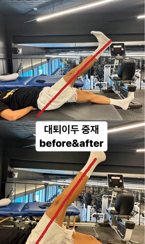 그러나 20회에 걸친 집중적인 치료 및 운동 교정 프로그램을 받은 후, 상황이 완전히 개선되었습니다. 치료 과정에서는 전문가의 지도 하에 다양한 운동과 스트레칭, 맞춤형 교정 운동이 포함되었습니다. 이 과정을 통해 외회전 가동 범위가 크게 향상되었고, 다리 길이의 불균형도 교정되었습니다.