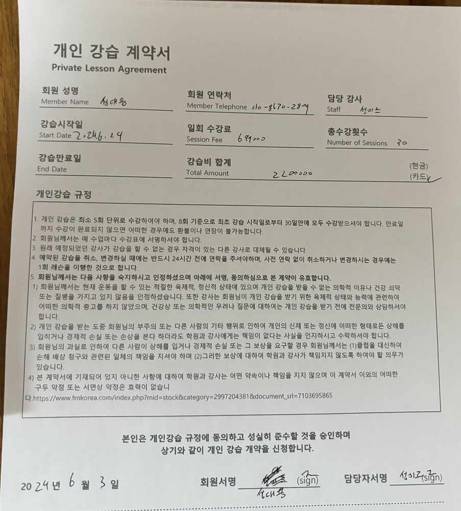 평소 운동경력이 2년가까이 되어 웨이트트레이닝에 꽤 능숙하다고 생각했었는데, 머신사용법을 비롯한 운동자세에서 아쉬운 부분들을 캐치해주셔서 앞으로 운동하는데 더 성장할 여지를 찾게 되었습니다!😁😁