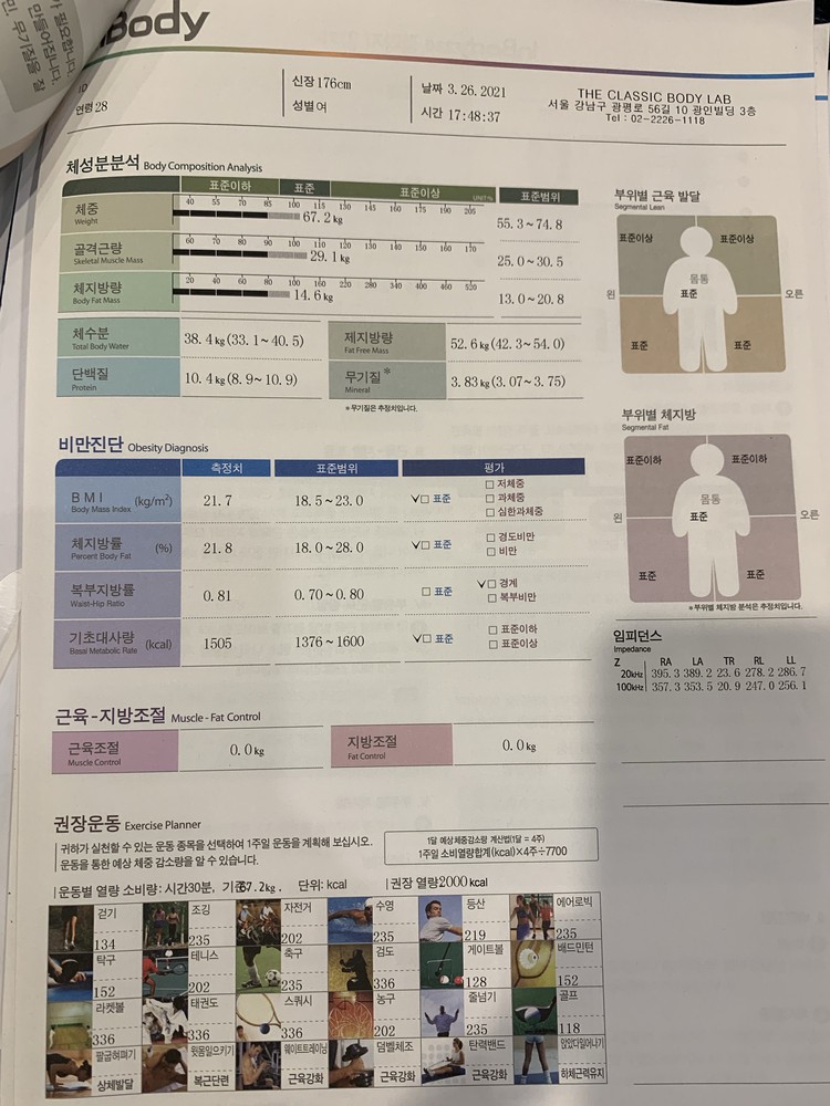 인바디 상담 뿐만 아니라 제 몸이 어떤지 정확하게 아시더라구요. 그리고 운동 동작 촬영하면서 어느 부분을 보완해야하는지 그리고 티칭설명도 깔끔하게 넘 잘하세용