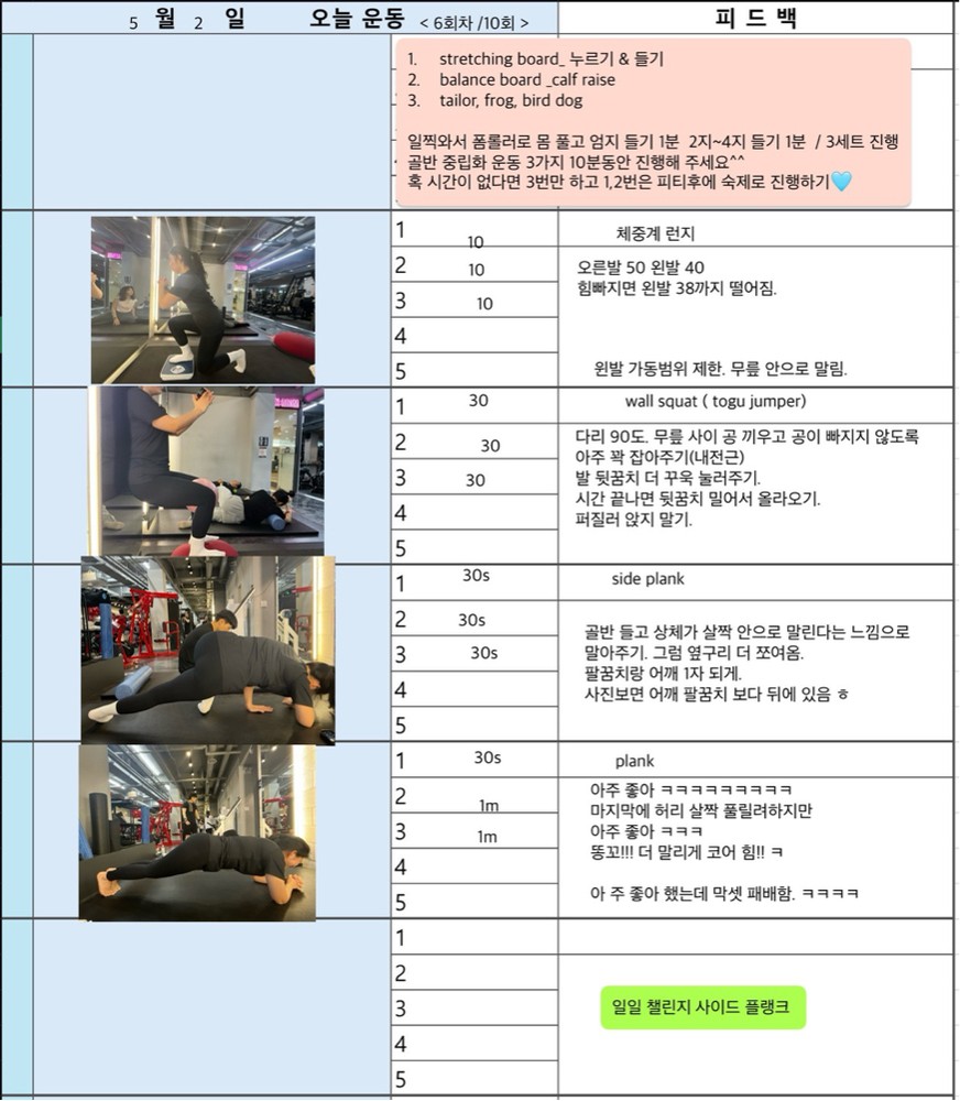 매일 운동 영상 찍어주고 운동일지 적어서 주시니까 너무 좋습니다.