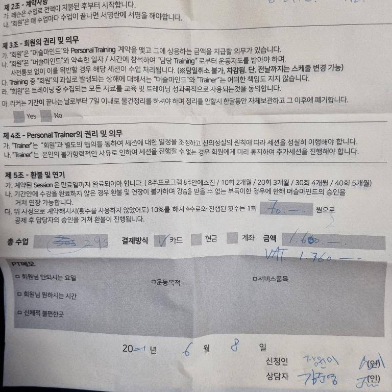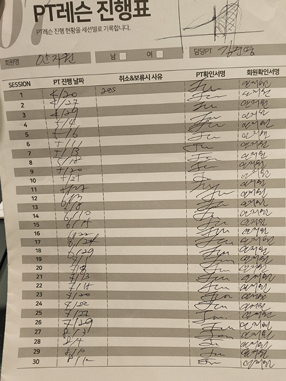 민경님! 운동이 처음이라 힘들어하셨는데 추가등록 까지 하시면서 열심히 해주셔서 너무 감사합니다🥹 첫 피티와 헬스장인만큼 좋은 과정과 결과로 기억에 남을 수 있는 트레이너가 되도록 노력할게요❗️ 앞으로도 빡세게 운동 가야돼 가야돼🔥