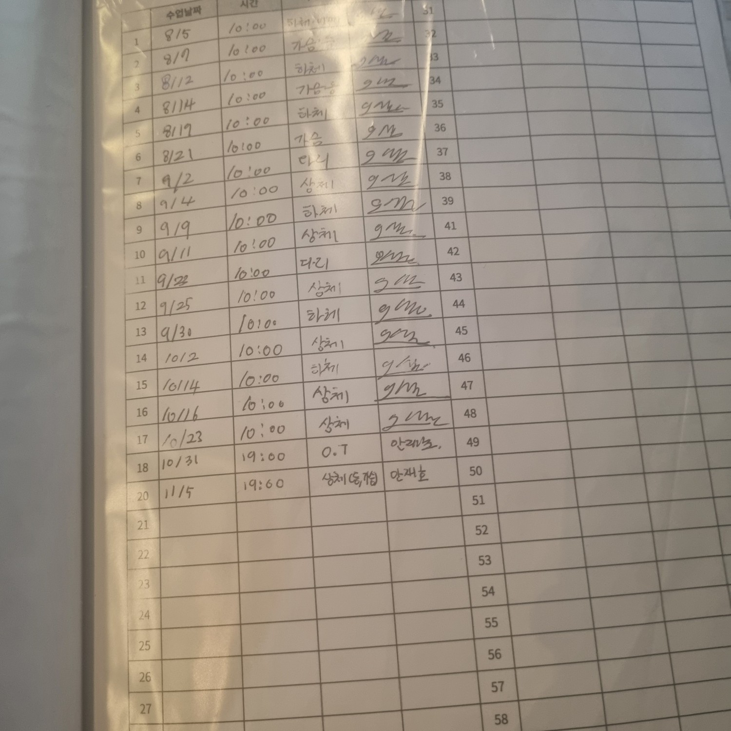 운동 처음이신분들도 망설이지 마시고 체험피티 꼭 받아보세요.기초체력 부족으로 친구 추천받아서 피티30회 받았습니다~ 양수쌤이랑 운동하면서 근육량도 오르고, 체력도 많이 좋아졌어요!