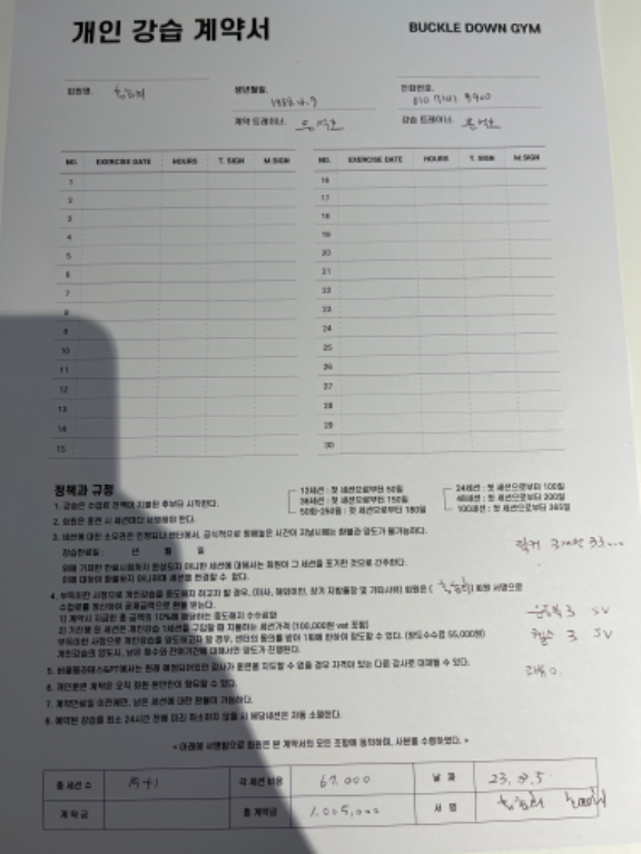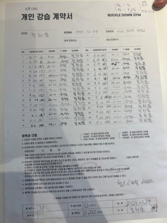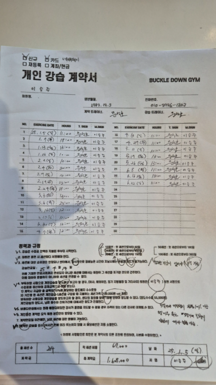 그러곤 바로 피티등록을 해서24회 피티를 받았습니다