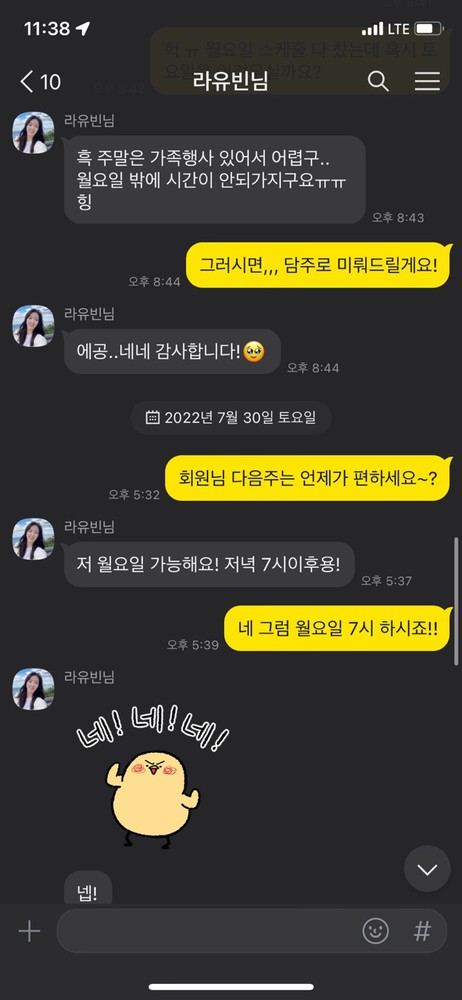 제가 안좋은 곳이 어딘지 딱! 알고 운동 알려주셔서 너무 좋습니다 👍 그리고 쌤이랑 운동하는것도 재밌어서 운동이 재밌게 느껴지는것같아요!