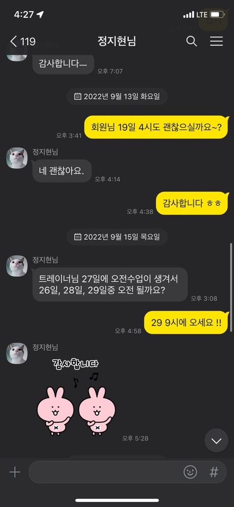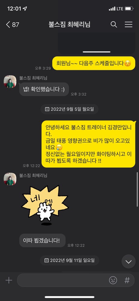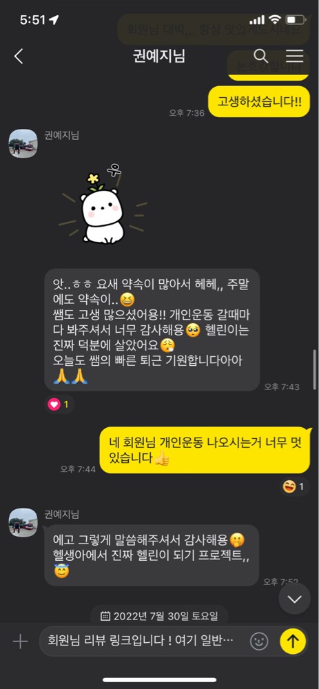 헬스장 갈때마다 언제나 친절하게 인사해주시고 제 체형과 상태를 고려해서 체계적인 수업을 해주시는 부분도 너무 좋아요🔥