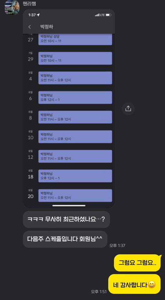 덕분에 허리도 많이 좋아졌고 몸도 좋아지는 게 보이니 참 좋네유 !헨리쌤 만나기 전에도 개인 pt 받았었는데