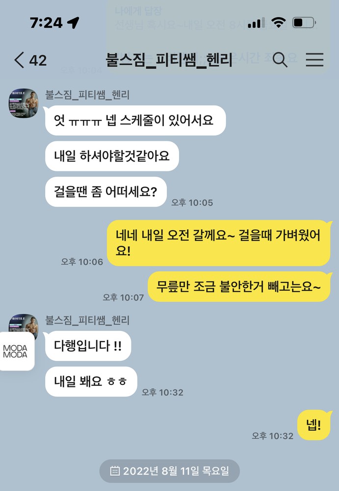 PT시작 전에 40대라 큰 기대 안했었는데 많이 좋아져서 매우 만족하고 있습니다.저의 생명의 은인이십니다.🥹👍🏻