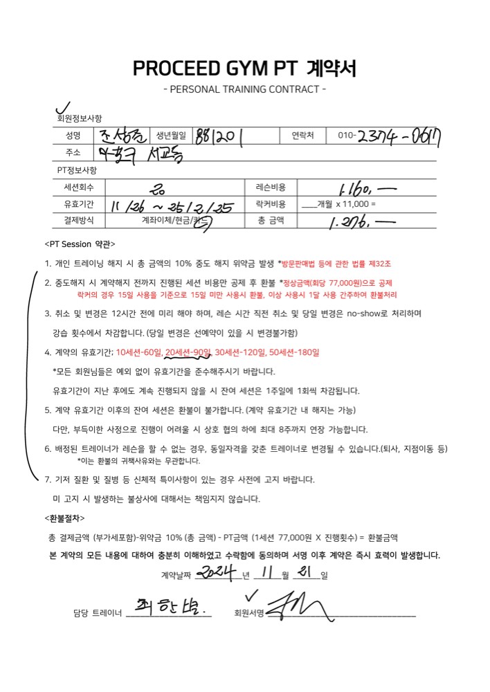 또 개인사유로 다른 헬스장으로 옮기게 되서 PT연장을 못하게 됬는데, 다른 곳으로 가게됨에도 불구하고