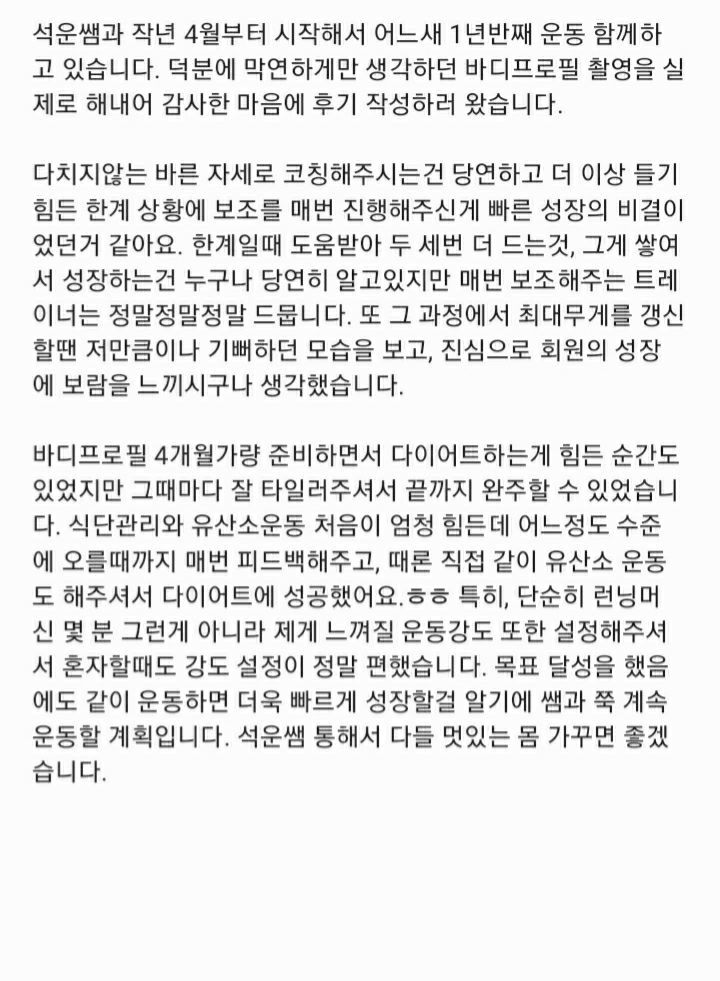 - 내 몸이 건강해지고 멋있어지는 PT를 원한다면 꼭 석운쌤과 함께 해보시길 추천드립니다.