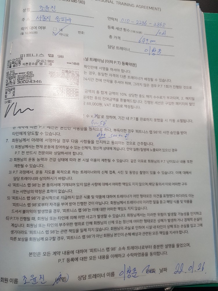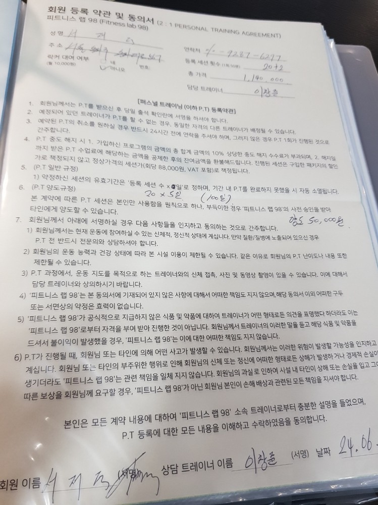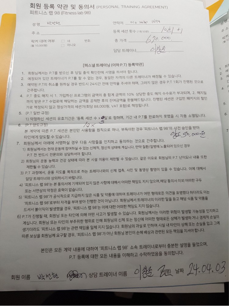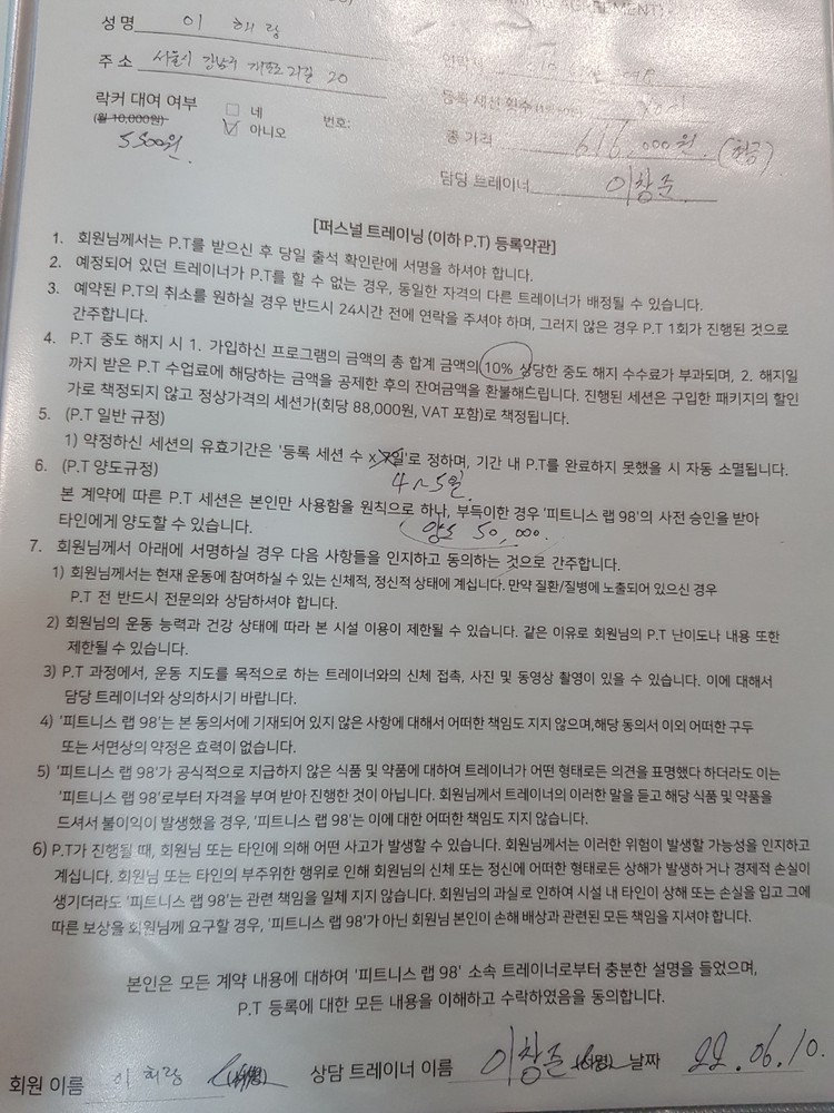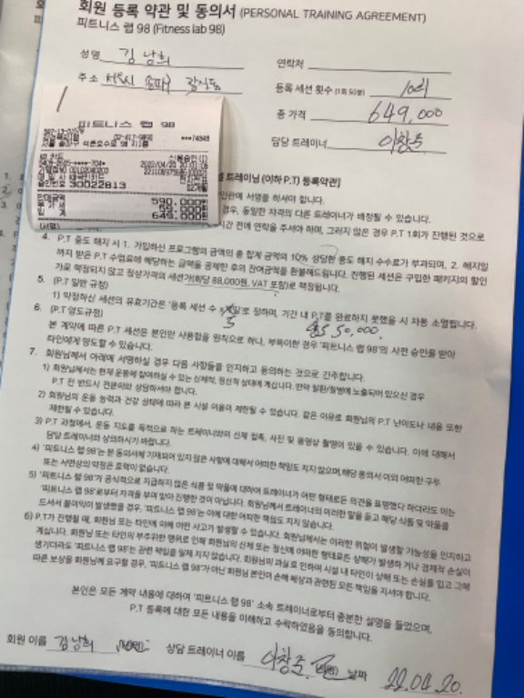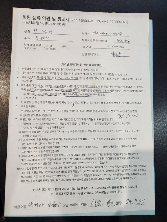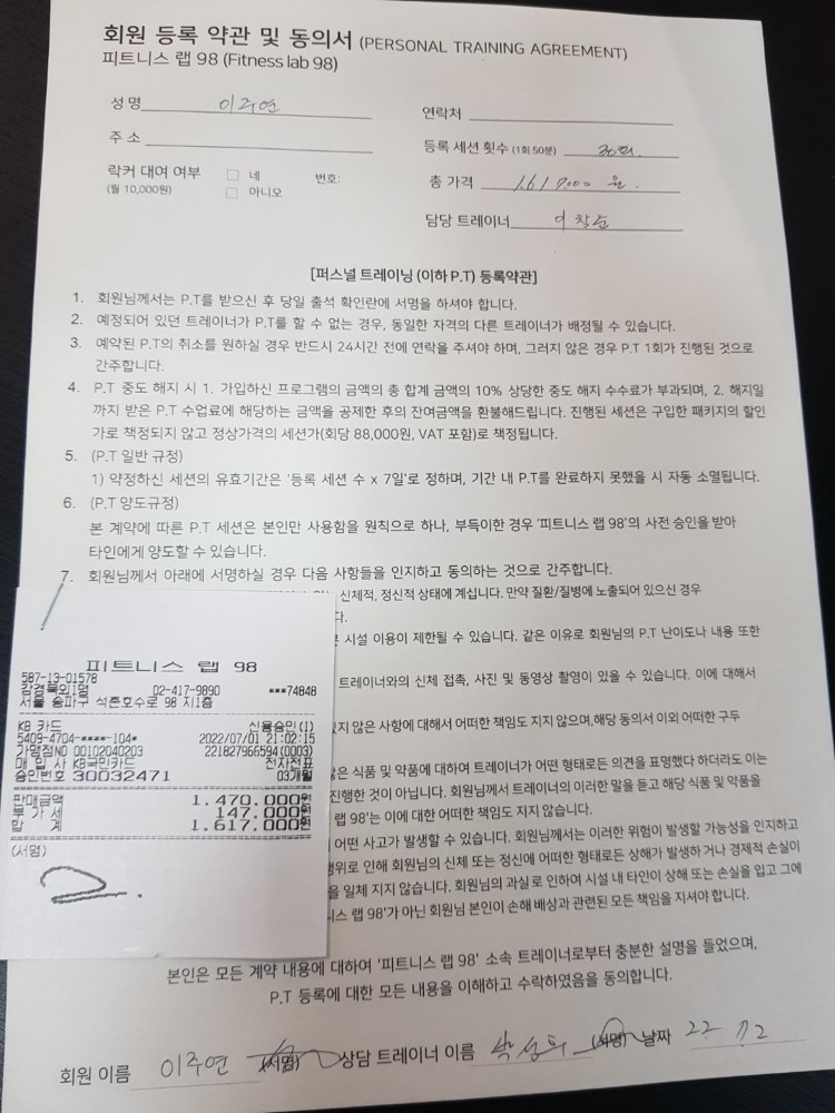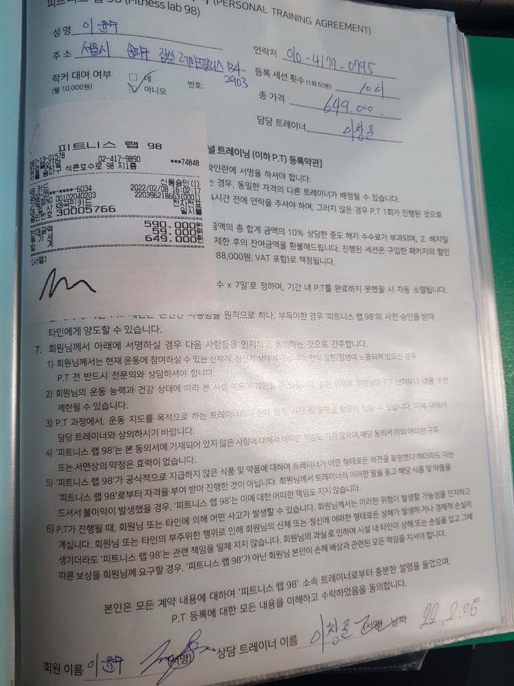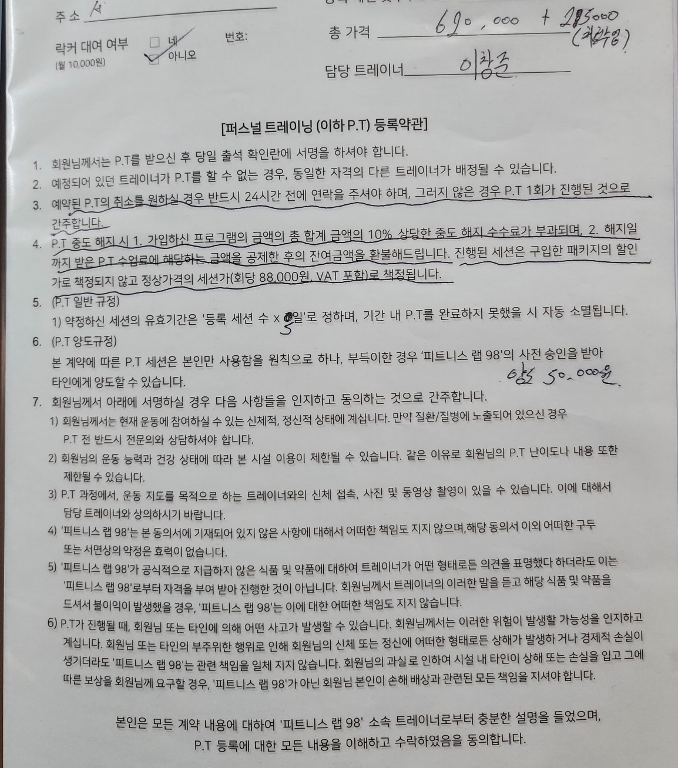 당일에 불편한 곳, 어떤 운동 히스토리를 가지고 있는지 꼼꼼히 물어봐주셨고 체험 운동을 무리하게 안 하시는 부분이 인상깊었습니다. 어깨랑 허리가 안 좋다고 하니까 재활운동을 먼저 시켜주시고 제 몸 상태부터 파악하시더라구요. 개인 맞춤형 pt가 가능할 것 같아서 당일에 계약했습니다.