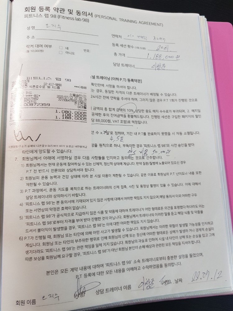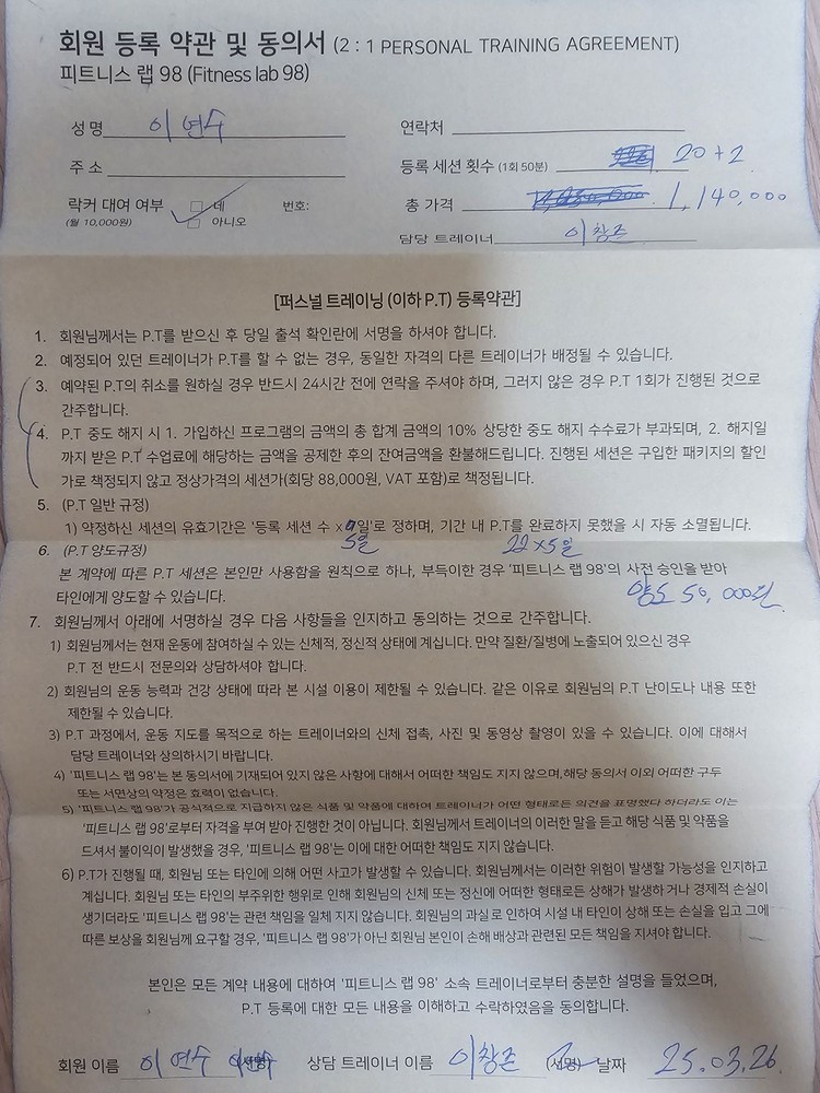 피티가 비싼데다 처음이라 그냥 숫자만 세는 트레이너 쌤 만나게 될까봐 너무 걱정 됐는데 20회 동안 내내 너무 잘 알려주셨어요!!
