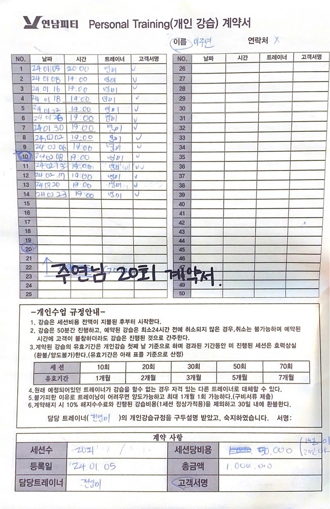 저는 우연히 유트브 통해서 연남피디 알게되서 한달 피티받고 너무 도움 많이 받아서미국에 사는데 한국에 나올때 마다 영미샘이랑 피티 받으려고 일부러 연남동 근처에 숙소 잡아서 이번에도 한달 피디 받고 가네요~ 운동 할줄 1도 모르는데 운동하면서도 근육이 올바르게 쓰이고 있는지 계속 자세 잡아주시고 갈때마다 땀이 나도록 운동 하고 갑니다. 혼자 운동 할땐 자세도 잘모르고 근육통도 별로 없었는데 처음으로 운동할때 근육이 타들어가는 경험을 해서 이렇게 하는게 진정한 운동이구나라고 깨닳았습니다. 집에 가서도 간단히 하는 운동도 잘알려주시고 운동할때 자세가 정말 중요하다는걸 경험 했습니다. 한달안에 기초대사량, 근육량은 올라가고 체지방률은 내려가서 몸이 한결 더 가벼워졌어요.