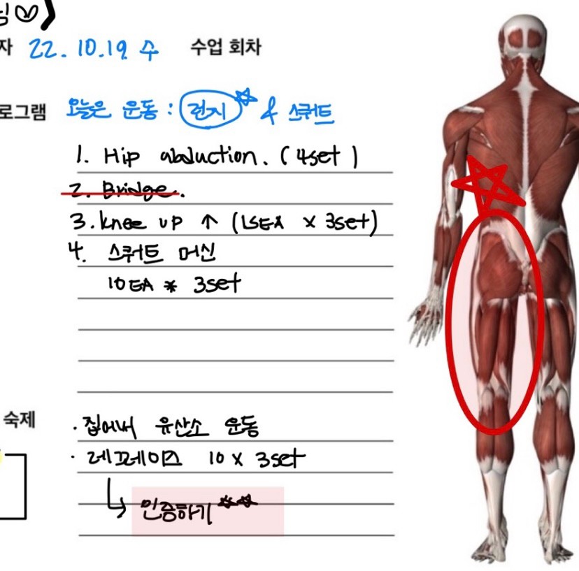 매주 한시간이나 걸려서 와주셨던 서연님~❤️ 우리 서연님 무릎 구부리는 동작 할 때 , 햄스트링 운동할때 , "선생님 여기는 원래 아픈건가요?"라고 물어볼때, "할 수 있다" "이건 해야한다" 조금만 버텨라" "하나더" 를 외쳤던 그 시간들을 잘 버텨주셔서 감사해요~🙇‍♀️ 힘들지만 안되는 동작이 될때 "나도 할수 있구나" 라는 마음을 느끼게 해주고 싶었습니다!❤️ 이제 혼자만의 긴 여정을 하게 된 서연님이 건강한 몸과 마음으로 지낼 수 있게 선생님도 응원하고 있겠습니다 서연님~!! 우리 또 만나용 아쟈아쟈✨