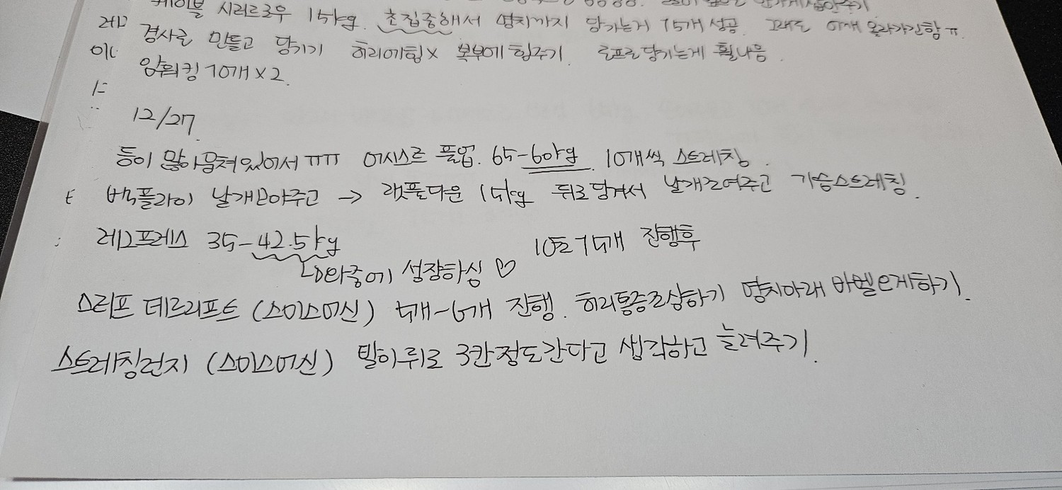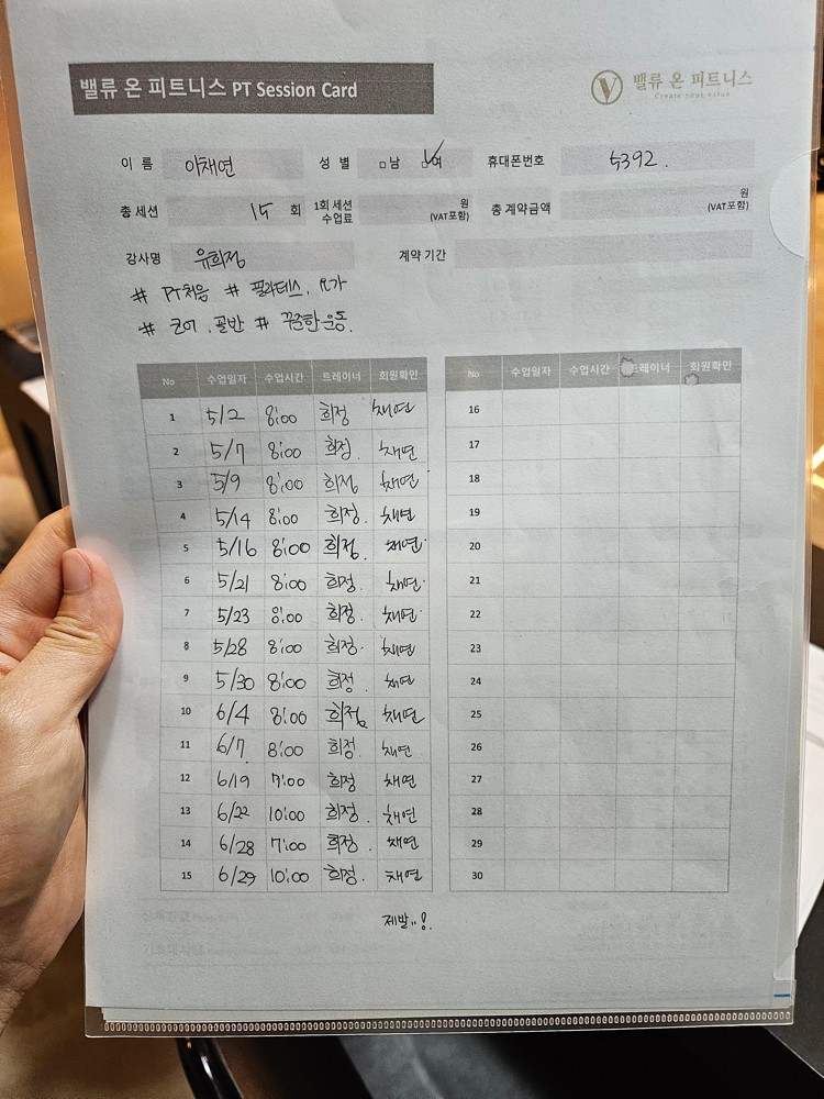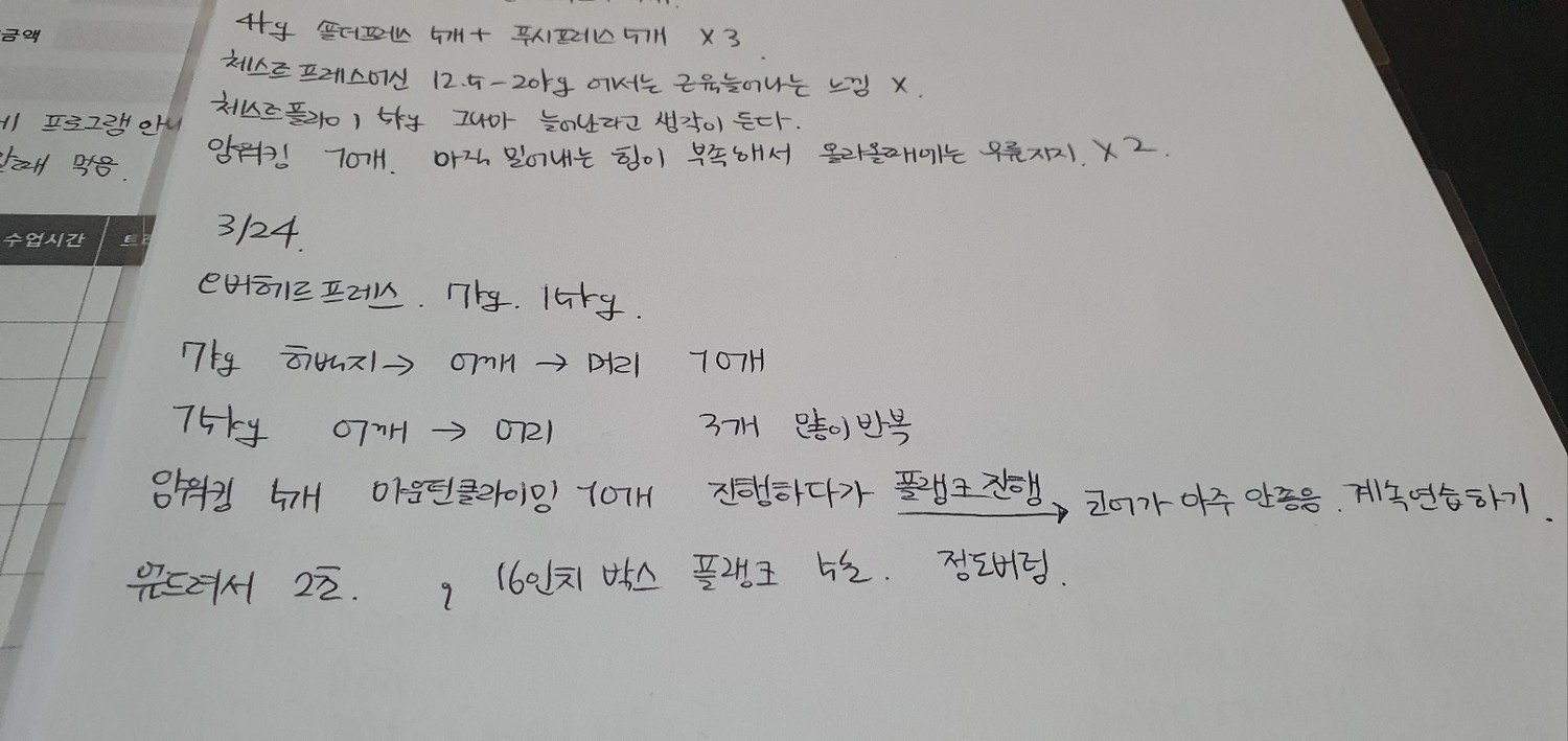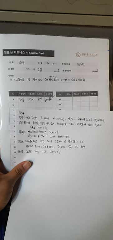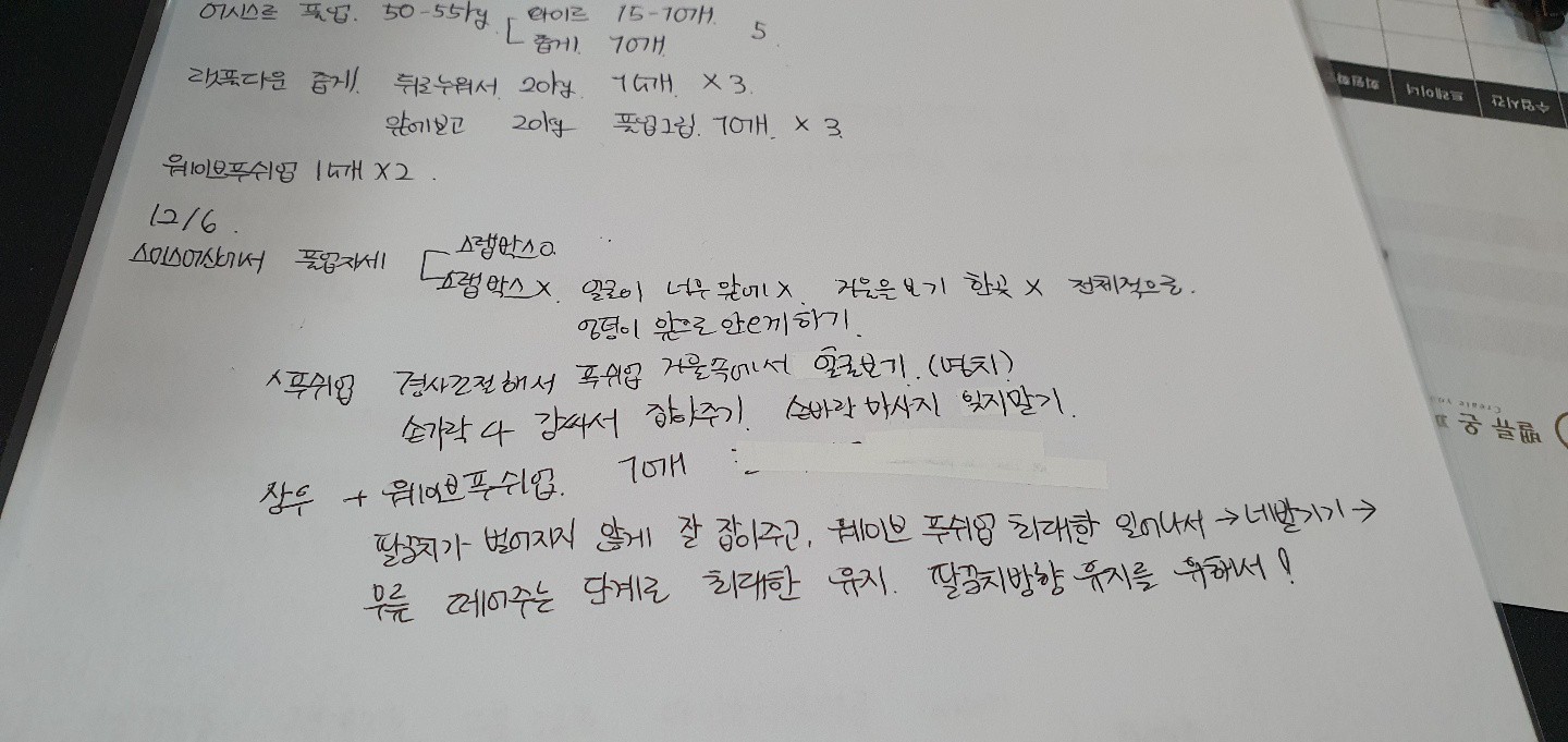 그리고, 특히! 수업끝나고 바로 운동일지를 꼼꼼하게 적어주셔서 개인운동할때도 걱정없이 운동할수있어서 잘 활용하고 있습니당:) 덕분에 개인운동도 잘다니고 있습니다 🥰