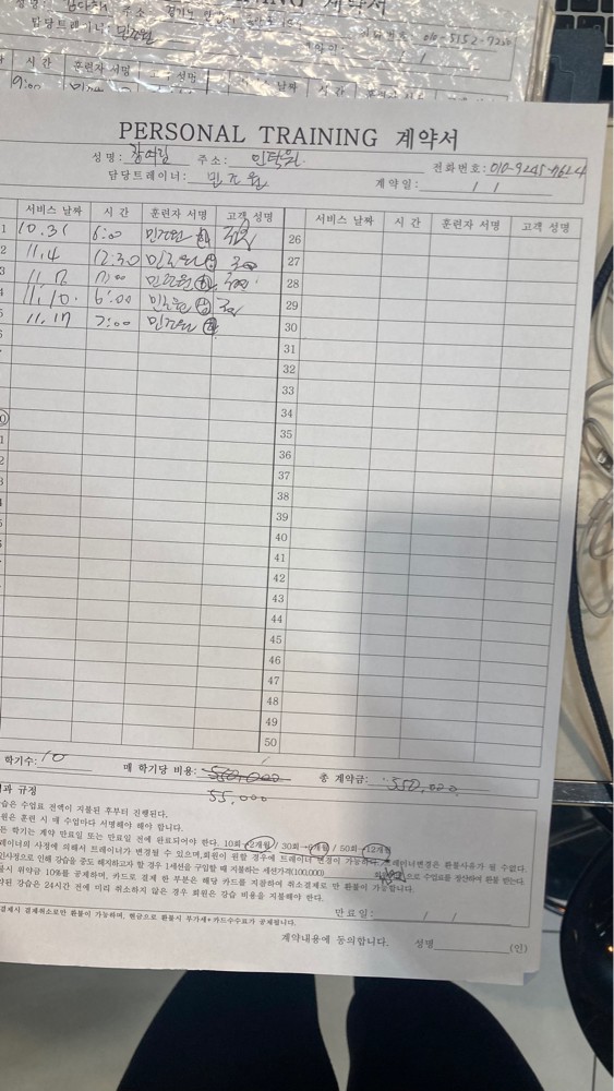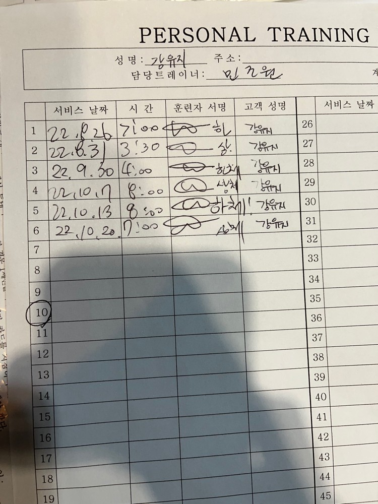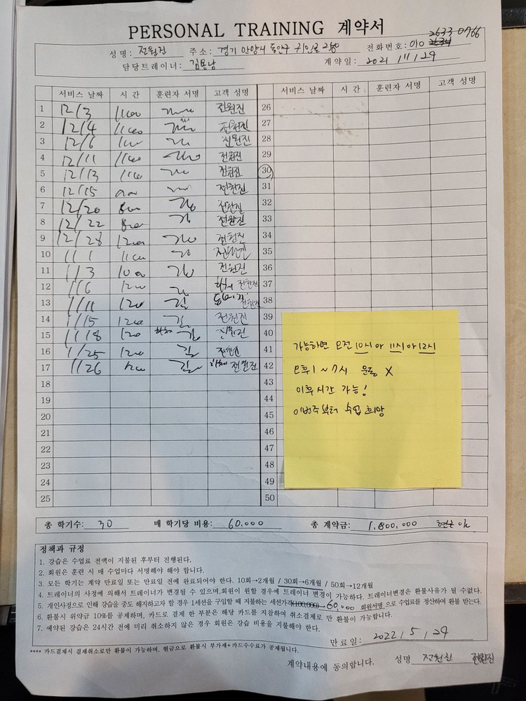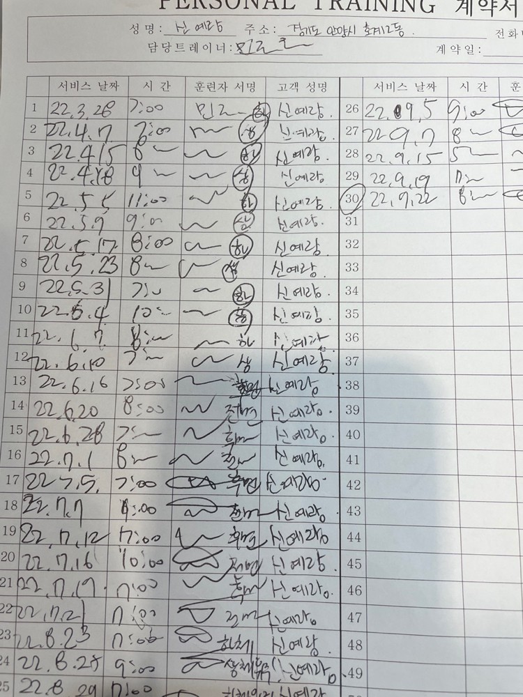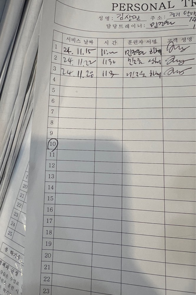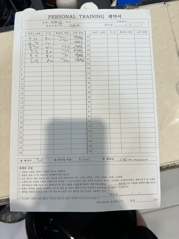 집에서 할 수 있는 운동, 스트레칭들도 잘 알려주시고 몸이나 컨디션에 맞게 프로그램을 짜주셔서 아프지 않게 운동 잘 받고 있습니당선생님과 함께 채워나가는 뿌듯한 싸인!! 예쁜 몸을 가지고 싶다는 욕심으로 시작했는데 확실히 몇 개월 지난 지금은 잔병치례도 없고 건강해졌어요!! 피티는 완전 처음이어서 낯설고 조금 겁도나기도 했는데 지금은 전.혀. 그런 두려움 1도 없어요!