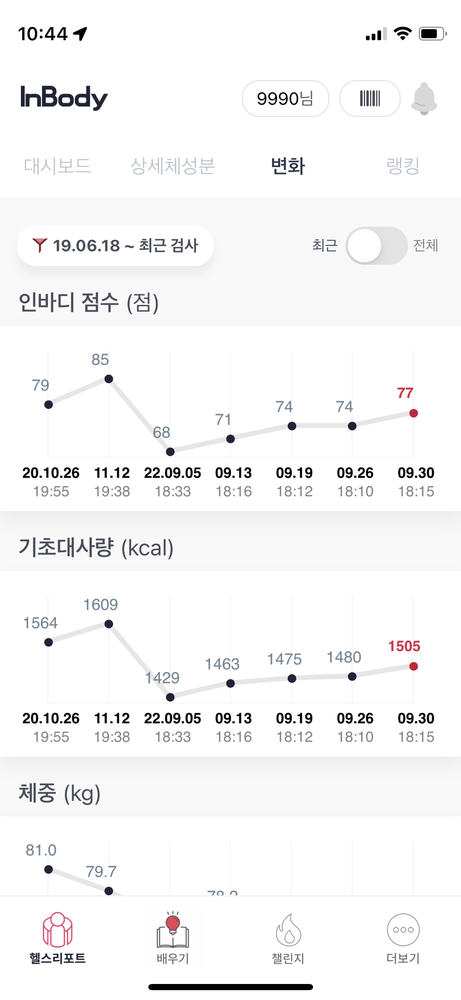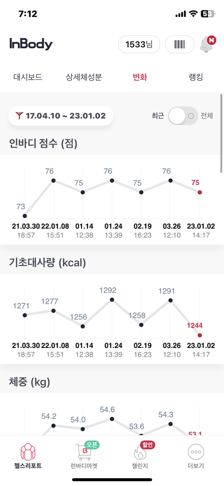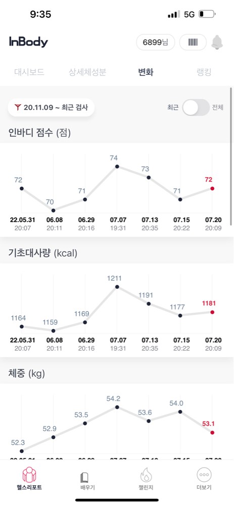매주 인바디로 변화되는 제 몸 볼때마다 운동할 맛이 납니다!! pt 수업이 없는 날에도 어떤 운동해야할지 가이드 해주셔서 개인운동도 어렵지 않게 하고있어요. (이 가이드 덕분에 근육이 늘은거 같아요ㅎㅎ)