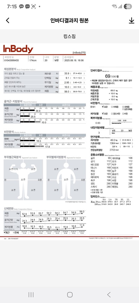 무엇보다 좋은건 인바디 체크해서 제몸 상태를 보시고 본격적으로 운동을 시작해서 좋았습니다~
